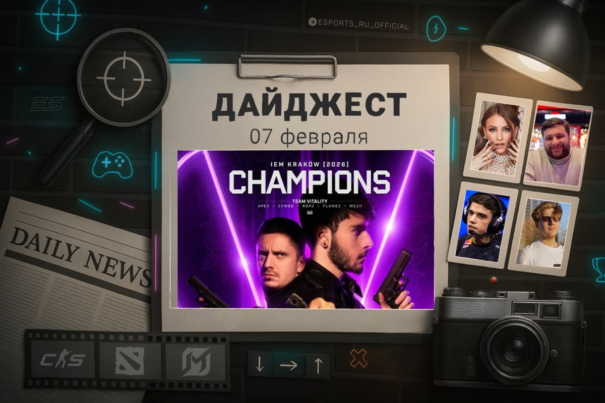 Где остальные? 🤨 ➖ Team Vitality — чемпионы IEM Krakow 2026. ➖ Zont1x прокомментировал победу Team Spirit над MOUZ. ➖ ZywOo хотел сделать перерыв в выступлениях на про-сцене CS2. ➖ CS2 стала одной из дисциплин на Esports Nations Cup 2026. ➖ RodjER объяснил решение Team Secret покинуть Dota 2. ➖ NS объяснил редкость подставных матчей среди тир-1 команд. ➖ Jimpphat опроверг слухи об уходе из MOUZ. 👍 Esports.ru | Дайджест