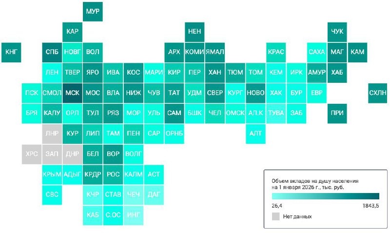По данным аналитиков, по состоянию на 1 января 2026 года в регионе объем вкладов на душу населения составляет 268,4 тысяч рублей. В прошлом году прирост вкладов составил 20,9%. Отметим, что соседний Татарстан находится на 26 месте (386,3 тысяч рублей), Чувашия на 37 месте (343,3 тысячи рублей), Нижегородская область на 15 месте (438,9 тысяч рублей) и Кировская на 41 месте (320,6 тысяч рублей). На первом месте находится Москва (1843,5 тысяч рублей), а на последнем Ингушетия (26,4 тысяч рублей), сообщает РИА Новости. 📸 Скрин: РИА Новости Подписывайтесь на наш канал в МАХ!