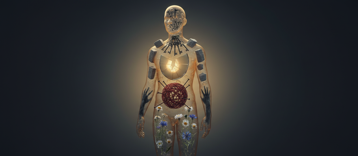 Вы замечали, как в определённых ситуациях тело реагирует раньше разума? Вдруг сжимается желудок при мысли о звонке определённому человеку. Необъяснимо ноет плечо перед важным событием. Перехватывает дыхание в помещении, где ничего страшного не произошло. Разум говорит: «Всё в порядке, это просто нервы», а тело отвечает мышечным панцирем, внезапной усталостью, болью без диагноза. Оно ведёт себя как отдельное существо со своей памятью и своим языком. Это не болезнь, а бессознательное, говорящее на языке органов, мышц и кожи. Архив, который не спросил вашего разрешения Наш мозг устроен хитро. Сознательная часть - префронтальная кора - хранит логические воспоминания: что, где, когда. Но более древние отделы мозга, отвечающие за выживание, фиксируют всё иначе. Они записывают не факты, а телесные ощущения, связанные с угрозой. Ребёнка отругали при всех. Сознание запомнит: «Мама была строгой в пятницу»,а тело запишет в свою хронику: жар в щеках + ком в горле + желание сжаться + запах духов в