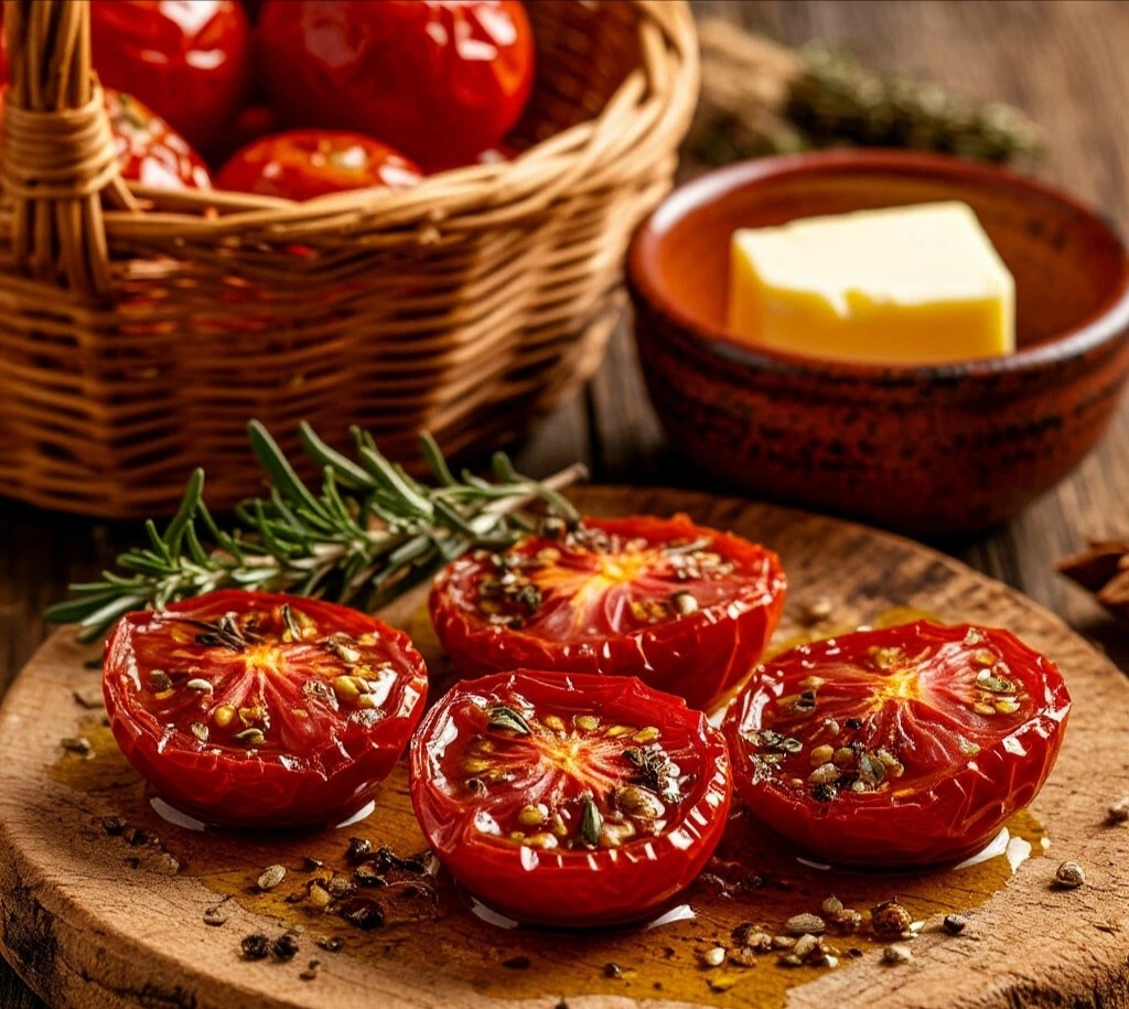 ПОЧЕМУ ЭТО ШЕДЕВР? 🎨 Этопревращение обычного в волшебное! В процессе томления вода уходит, а вкус концентрируется, становясь сладким, насыщенным, с лёгкой кислинкой. Эти томаты — секретное оружие для превращения простого блюда в шедевр. А масло, в котором они хранятся, становится ароматнейшей заправкой! 🧴