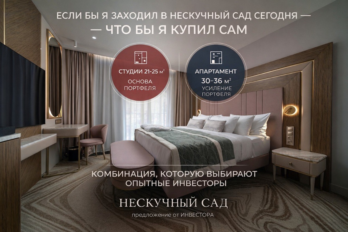 Этот вопрос мне задают регулярно: «Сергей, а если без рекламы — что бы вы реально взяли себе?» Отвечаю честно. Не как продавец. Как инвестор. Если цель — разумный вход, высокая ликвидность и понятная доходность, я бы собрал портфель из двух форматов, с разной логикой управления. 1️⃣ СТУДИИ 21–25 М² — ОСНОВА ПОРТФЕЛЯ Почему именно они: — самый низкий чек входа — максимальная ликвидность при перепродаже — быстрее всего заполняются в аренде — легко продаются инвестору через 2–3 года — минимальный риск «зависшего» лота На практике именно такие апартаменты: — первыми исчезают из продаж — первыми растут в цене после запуска отеля — дают самый стабильный арендный поток Проще говоря — рабочая лошадка инвестора 🐎 Пример реального лота под управлением UPRO GROUP (чистый бизнес, котловое распределение дохода): Апартамент №446 • Корпус: К1, БС5 • Гост. номер: 5.2.3 • Этаж: 2 • Площадь: 24,8 м² • Тип: студия • Вид: внутренняя территория / двор • Цена: 13 888 000 ₽ 2️⃣ АПАРТАМЕНТ 30–36 М