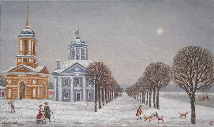❄ В феврале, в феврале Едет вьюга на метле! По озерам и по рекам Белым снегом замела Черной ночи зеркала! И звезде себя не видно… Ей, наверное, обидно За белесой пеленой Быть невидимой звездой. #СергейКозлов 🖼 #ВиталийЕрмолаев Февраль в Кусково & #РусскаяПоэзия & #Живопись & #РусскаяЖивопись & #УтроФевраль .......Никакого селения кругом не видно