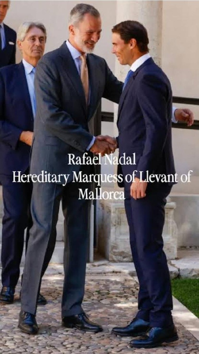 Рафаэль Надаль получил титул маркиза Леванта Майорки от короля Испании Филиппа VI в июне 2025 года и стал частью испанской знати 👑