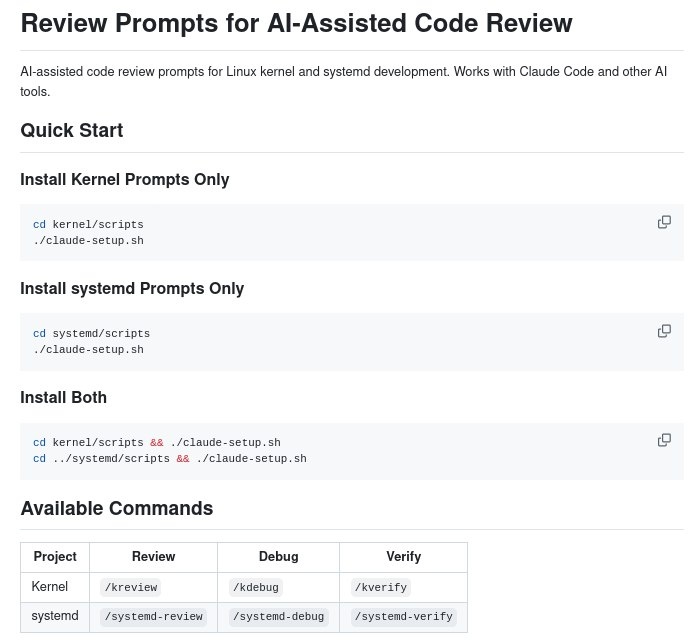 ⚡ Представлен набор промптов и подсказок для рецензирования изменений в ядре Linux и systemd при помощи ИИ