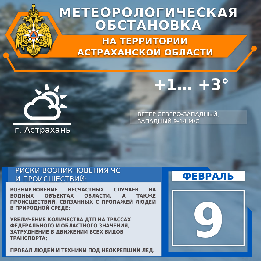 На территории области: облачно. Местами небольшие осадки (дождь, мокрый снег, снег). Ветер северо-западный 9-14 м/с. Температура воздуха -4…-1°, по северу до -6°. По Астрахани: облачно. Без существенных осадков.
