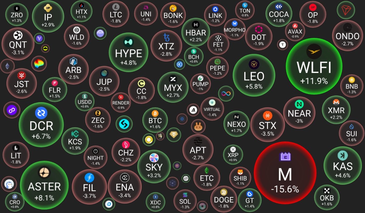 🗓 09.02.2026 09:30 по Москве. 🔗 Посмотреть на сайте 📈 Лидеры роста (из ТОП-100): 🟢 World Liberty Financial (WLFI): $0.1113 (+11.9%) 🟢 Aster (ASTER): $0.6258 (+8.1%) 🟢 Decred (DCR): $26.18 (+6.7%) 📉 Лидеры падения (из ТОП-100): 🔴 MemeCore (M): $1.4095 (-15.6%) 🔴 Filecoin (FIL): $0.9269 (-3.7%) 🔴 Stacks (STX): $0.2628 (-3.5%) 🔍 Основные метрики: 🟢 Общая капитализация: $2388.86 млрд (+0.75%) 🔴 Общий объем торгов: $95.62 млрд (-27.87%) 🟢 Доминация Bitcoin: 58.88% (+0.46%) 🔴 Доминация Ethereum: 10.47% (-0.14%) 🟢 Индекс страха и жадности: 14 / 100: ЭКСТРЕМАЛЬНЫЙ СТРАХ (+7) 🟢 Индекс Альтсезона: 23 / 100: БИТКОИН-СЕЗОН (+1) 📖 Интересно почитать: 👉 Выбираем ОС для майнинга криптовалют. 😻 Наши сервисы и бонусы: 💬 Яндекс Дзен - публикуем последние новостии и статьи 📈 MEXC - 20% скидка на комиссии. На бирже MEXC самые низкие комиссии для торговли, иногда бывают акции с нулевой комиссией.