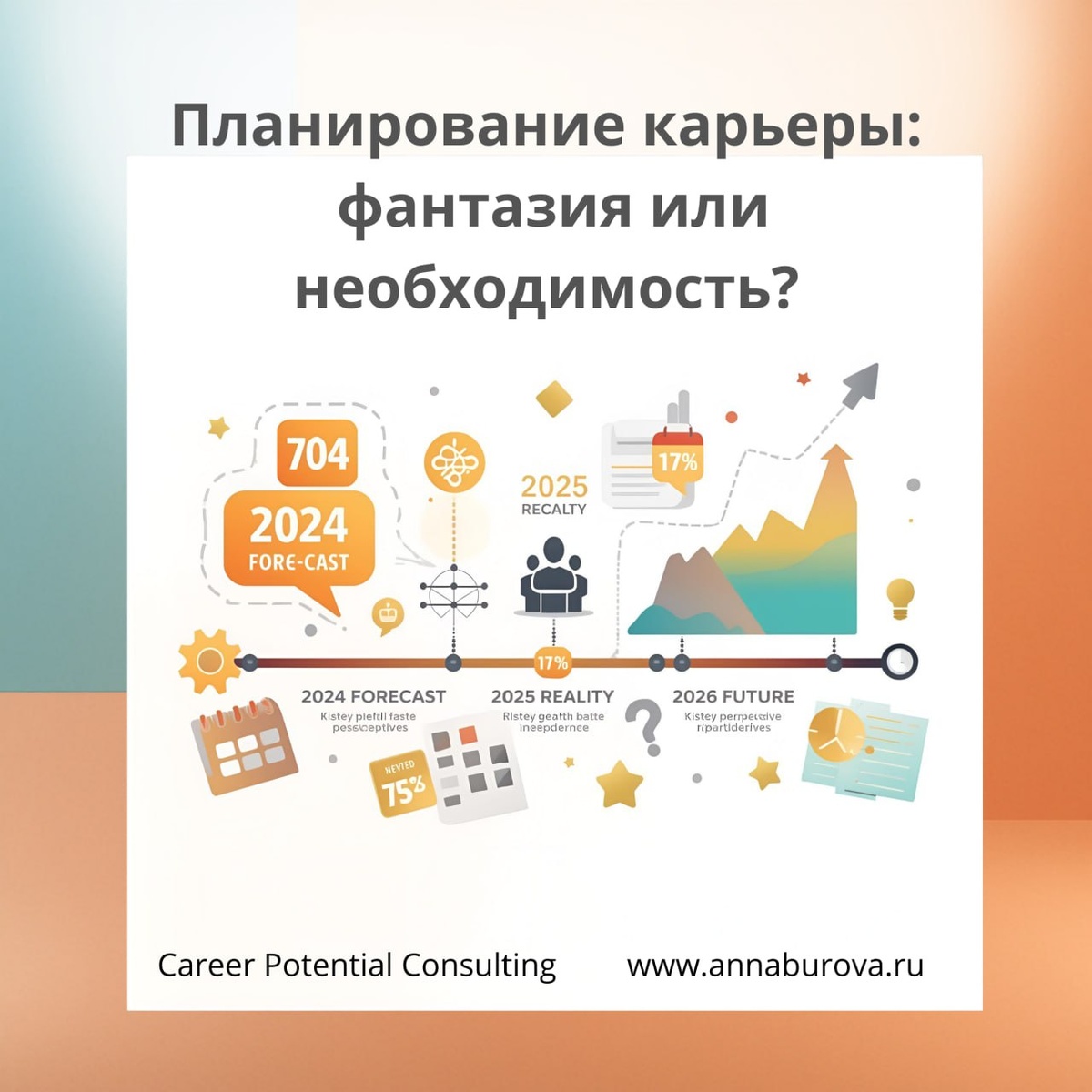 ". Согласны? Вчера увидела пост коллеги-хэдхантера о том, что вопрос "где вы видите себя через 5 лет" — это бесполезная игра в угадайку. Его аргументы убедительны: никто не может предсказать будущее с точностью, рынок меняется, технологии меняются, приоритеты меняются. Зачем притворяться, что мы можем это знать? Написала комментарий. Получила ответ: "Вопросы про 5 лет — это не про прогноз, а про фантазию человека. Потому что в наше время точно ничего не планируется" Но откуда взялось требование точности? Больше 10 лет я специализируюсь на карьерном консультировании профессионалов. До этого 20 лет реализовывала проекты по оценке и развитию потенциала. Каждый день сессии в рамках ТрансформПро. И вижу паттерн, который не укладывается в тезис "планирование невозможно". Приходят два типа профессионалов: ✅ Те, кто знают цели → им нужен план действий ✅ Те, кто не знают → нужно прояснить цели Но никто из них не отказывается планировать даже в условиях неопределенности! Более того, люди го
