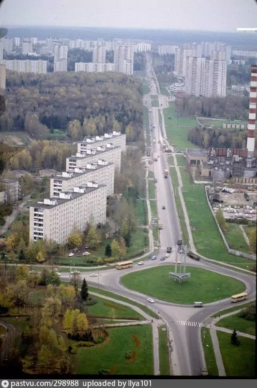 Вид на Панфиловский проспект с вертолета, 1990 год. Фото Вячеслава Киселева с сайта pastvu.com