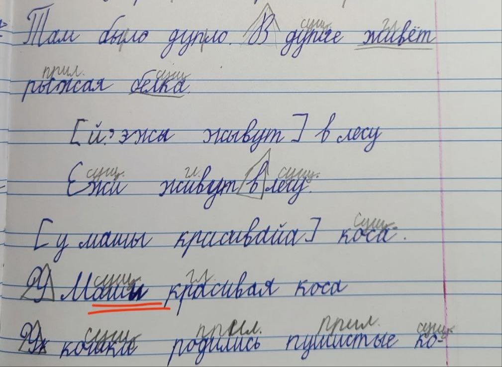 Посмотрите на работу моего сына в классе, как много транскрипций.