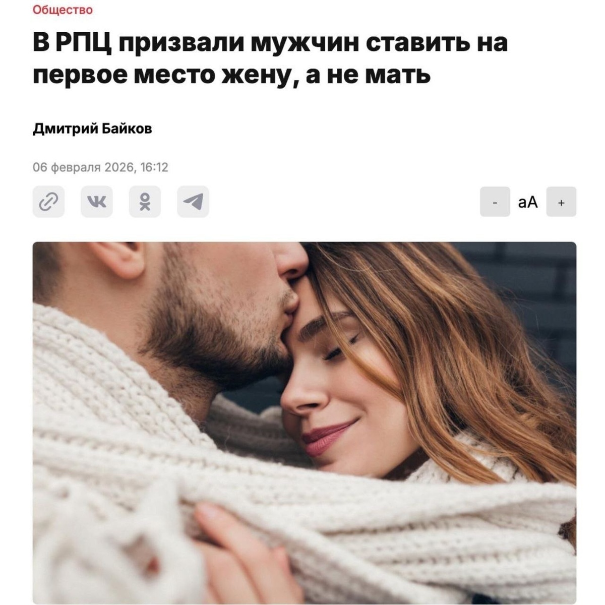 По словам протоиерея Виталия Рыбакова, к матери необходимо сохранять уважение и любовь, однако в собственной семье главным авторитетом для мужчины должна быть его супруга.