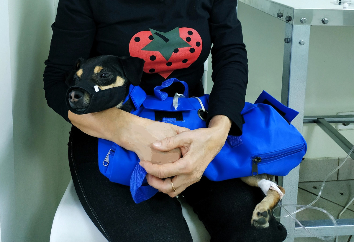 Эльфа нужно вести на инъекции. “И как, - спрашиваю себя в панике, - это действо свершить?” На подмогу мне незамедлительно выехала “скорая помощь” – невестушка Наташа. И стали мы уже вдвоем думать-кумекать, как и что делать. Дойти не беда, с удовольствием прогуляемся до крылечка заветной лечебницы. И даже нависай над крыльцом кадуцей - волшебный посох, обвитый двумя змеями, даже он не испугает Эльфа. А вот как с нашим козликом там управиться, в медкабинете? “Ну, мы сильные, а тут песик как ребенок, нас двое, справимся: обломаем, спеленаем”, - размышляли мы. Ах, эта вера да святая наивность… Пришли в наморднике, как полагается. Да не мы, конечно. Пациенту надели, чтобы обезопасить медперсонал от его зубищ. Зашли…закрутился-заегозился. Вдвоем не справляемся. Рычание, всплески эмоций, крики. Пациент буйствует. Едва врач с иглой в руке приближается, Эльф визжит как резаный: - Эскулапы жизни лишают, спасайте, люди добрые! И тут открывается дверь и в кабинет уверенно входит по своей врачебной