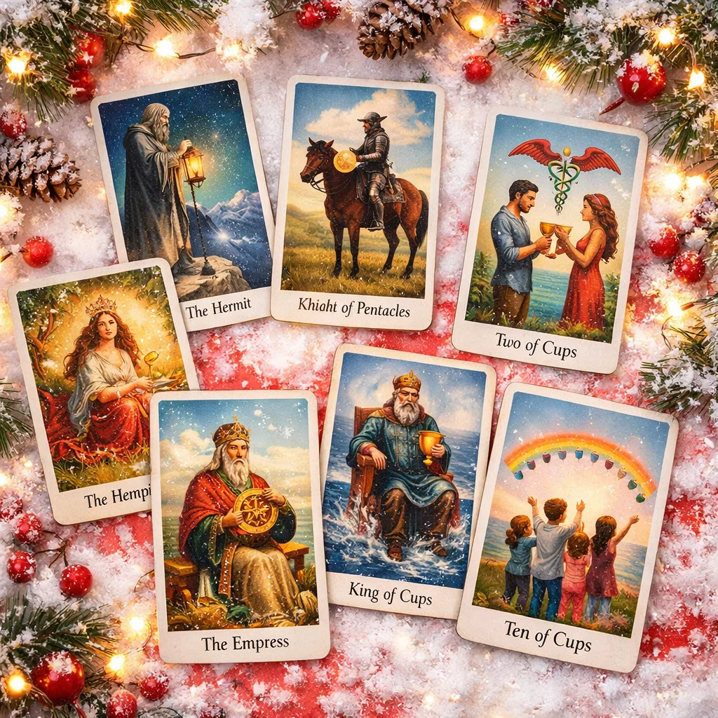 Спасибо каждому за лайки, подписки, комментарии, донаты! 🙏❤️ Вы вдохновляете меня создавать новые расклады и делиться важными посланиями. Пусть всё добро возвращается к вам сторицей! 💖 Девочки, сегодня карты легли так, будто давно ждали этого вопроса. Первая же — Отшельник — вышла не как символ одиночества, а как его финал. Вы были в этом периоде не случайно: вы собирали себя, отсеивали лишнее, учились слышать тишину. Но Отшельник уже разворачивается спиной — его работа окончена. Дальше идти одной больше не нужно. Следом раскрывается Колесо Фортуны, и здесь уже без полутонов. Судьба запускает движение. То, что долго не сдвигалось, внезапно начинает крутиться, как будто кто-то наверху сказал: «Пора». Случайности начнут складываться слишком точно, чтобы быть случайными. Именно в этот момент в раскладе появляется он. Его показывает Рыцарь Пентаклей, и это важный акцент. Это не мужчина-ураган и не обещания на эмоциях. Это тот, кто идёт медленно, но прямо в цель. Он уже принял решение, пр