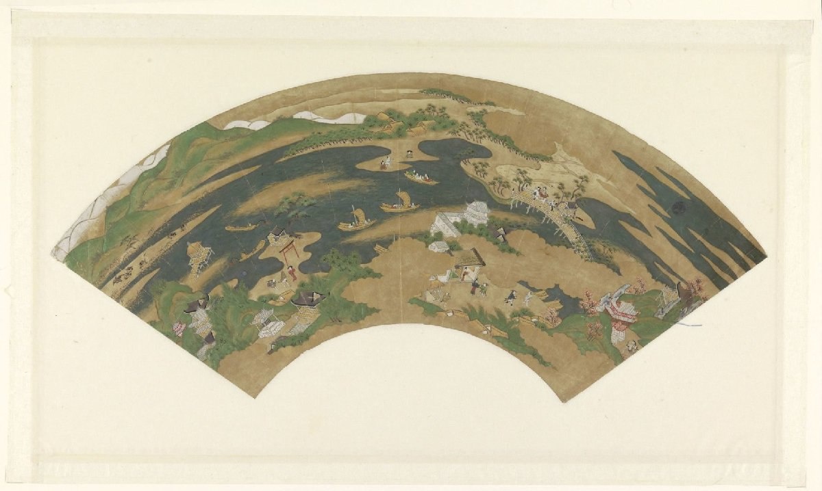 Веерная живопись с речным пейзажем — Неизвестный художник, XVIII-XIX века