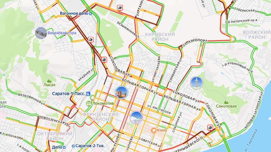 Сегодня утром дороги Саратова сковали 10-балльные пробки. Такую оценку дорожной ситуации дал сервис "Яндекс Карты". Движение сильно затруднено на улицах Мичурина, Чернышевского, Советской, Октябрьской, Орджоникидзе, Политехнической, Новоузенской, Аткарской, Шелковичной, Рабочей, Первомайской, Московской, Чапаева, Рахова, Астраханской, Соколовой, Мясницкой, Симбирской, Танкистов, Большой Горной, Навашина, Аэропорт, Усть-Курдюмской. Также машины встали на проспектах 50 лет Октября, Строителей и Энтузиастов. Ситуация на дорогах осложняется многочисленными ДТП.