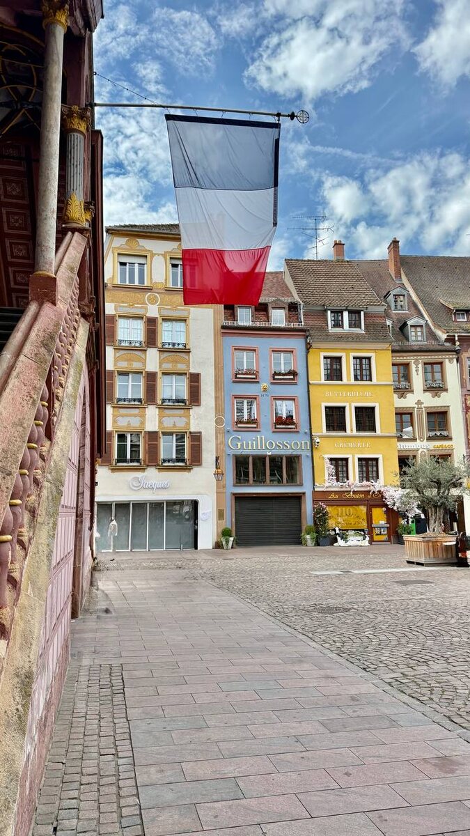 🔤🔤🔤🔤🔤🔤🔤🔤🔤🔤🔤 📍Мюлуз , Франция Итак, выход во Францию в аэропорту Базеля открывает путь в Эльзас (в школе учили, как вечно делили Эльзас и Лотарингию) Мюлуз - ближайший к аэропорту, небольшой , не очень туристический и оттого втройне милый городок. Получаса хватит обойти центр и затем прогуляться по тихим районам глубже к окраинам. На центральной площади на минутку показалось , что на здания натянут тент, как у нас бывает, когда прикрыть разруху надо, а оказалось, это старинные здания действительно расписаны так. Это отпечаток близости к границам Германии и Швейцарии, где было популярно украшать фасады нарисованными элементами — колоннами, карнизами, барельефами. Мюлуз находился под сильным влиянием этих регионов, и даже был швейцарским городом, поэтому перенял моду. Росписи фасадов заменяли скульптурный декор, который был дороже. Интересно: ▪️традиция росписей в Мюлузе не прервалась — сегодня художники продолжают украшать фасады, даже проводится фестиваль граффити. П