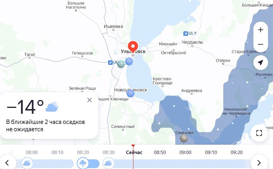 Снег - всё? Судя по карте осадков, снегопада сегодня в Ульяновске больше не будет