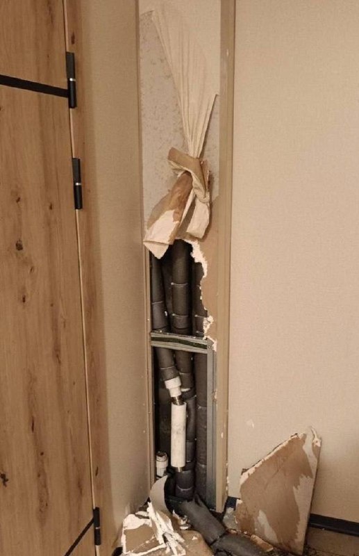 Кипяток залил коридор, несколько квартир и кладовые, испортив свежий ремонт и вещи. Сигнализация сработала около пяти утра, но воду перекрыли только через час — сотрудник УК долго искал нужный вентиль. Управляйка обещает возместить ущерб по гарантии, но причину аварии пока не назвала. ЖК новый, проблемы старые