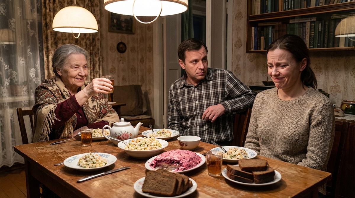 Тишина. Вилка звякнула о тарелку. Губы свекрови сжались в нитку.