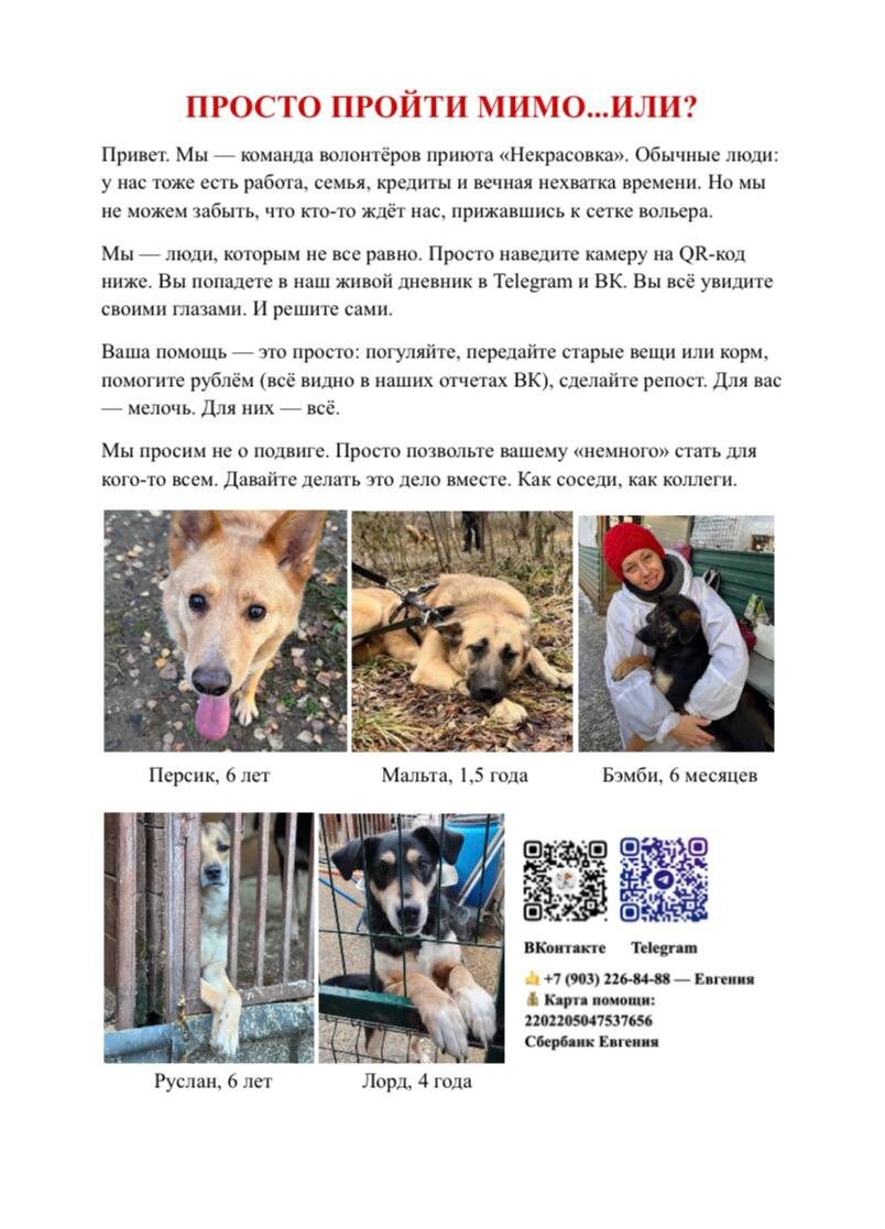 ». Рассказываем, что можно сделать⬇️ Мы подготовили специальный плакат о наших хвостиках. Ваша миссия — распространить его в своём окружении. Это займёт 15 минут, но может изменить чью-то жизнь. Как стать нашим послом добра? 6️⃣ Скачайте макет плаката в файлике. 2️⃣ Распечатайте его на обычном цветном принтере (А4). 3️⃣ Разместите там, где его увидят: в подъезде, на работе, в университете, в местном кафе (с разрешения). 4️⃣ Сфотографируйте результат и делитесь с нами в комментариях. 5️⃣ Отправьте фото хвостиков и текст плаката в чаты соседей, коллег, однокурсников. Почему это работает? Кто-то, кто не сидит в соцсетях постоянно, может увидеть это объявление по дороге в магазин — и именно он станет тем самым волонтёром или новым хозяином. 🖼️ Каждая такая распечатка — это новый шанс для наших подопечных. И для нас большая честь, что вы готовы быть их голосом в своём рабочем коллективе, университете или жилом комплексе. Особенно ждём фото ваших объявлений, чтобы мы могли лично поб