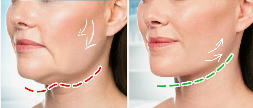 Овал лица пожалуй та зона, которая чуть ли не первая выдаёт возраст человека. Ведь лицо всё ещё может держаться, а вот овал лица уже поплыл вниз. Причин тому много: и это не только деформация и изменения в мышцах, но ещё и отёчность.