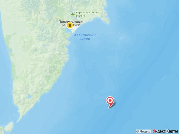 Днём 9 февраля у восточного побережья Камчатки произошло землетрясение магнитудой 5,8, сообщили РАИ «КАМЧАТКА-ИНФОРМ» в Камчатском филиале Единой Геофизической службы РАН. Эпицентр сейсмособытия, зарегистрированного в 17:09, находился в акватории Тихого океана в 232 километрах юго-восточнее Петропавловска-Камчатского. Очаг залегал на глубине 40,5 километра под морским дном. О силе подземных толчков не сообщается, но жители краевого центра в соцсетях пишут, что слегка качнуло. Напомним, уровень сейсмичности на полуострове учёные оценивают как повышенный. 🟠 КАМЧАТКА-ИНФОРМ — новости Камчатки в Telegram 🟠 Фоторепортажи и эксклюзивные материалы на kamchatinfo.com 🟠 НАПИСАТЬ НАМ