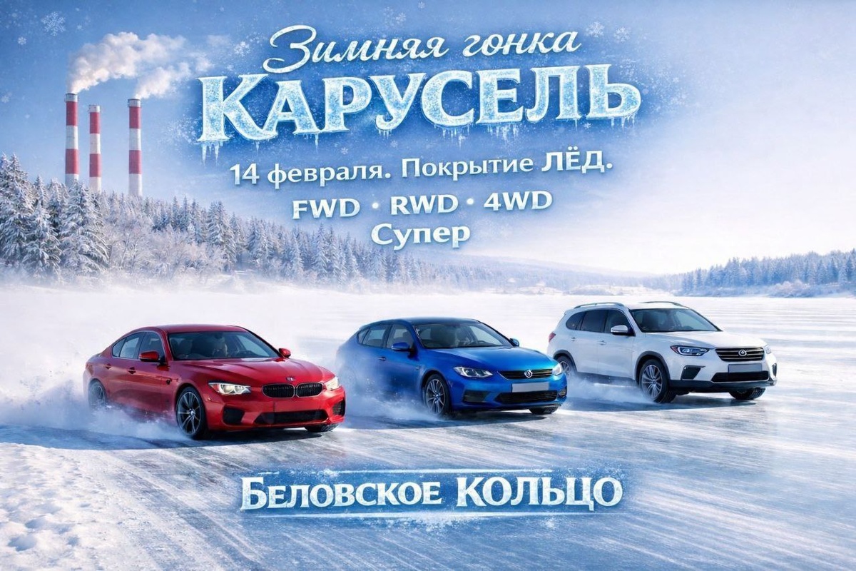 "! 14 февраля 2026 года. Место проведения: пос. Инской, Беловское водохранилище Деление на классы по типу привода: 🏎задний привод 🏎 передний привод 🏎полный привод 🏎 четвертый/супер класс Расписание этапа: 🏁Регистрация участников 9:00-9:40 🏁Технический контроль автомобилей 9:20-9:40 🏁 Брифинг 9:40-10:00 🏁 Пробные заезды 10:00-10:30 🏁Квалификация 10:30-11:50 🏁Начало заездов 12:00 🏁Окончание заездов, награждение Дополнительная информация и вопросы @Shrekgeka Для зрителей вход бесплатный
