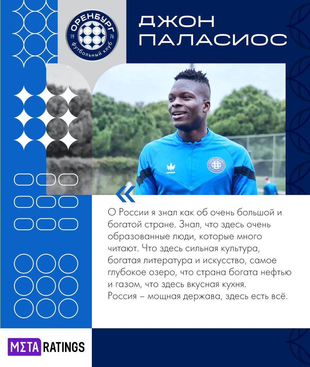👏 Колумбийский новичок ФК «Оренбург» рассказал о своей семье, знаниях о России и целях в новой команде. Полный текст - по ссылке. #ФКОренбург #ДжонПаласиос