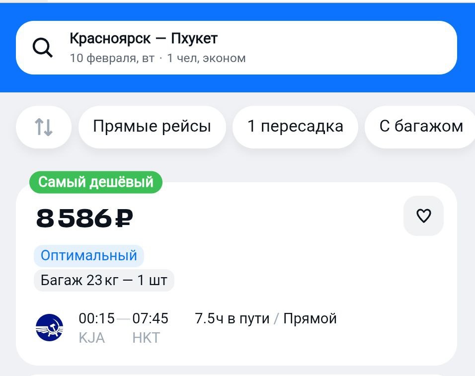 🍀 Пхукет уже 8500₽ 👆 https://aviasales.tpk.lv/pw03rsTR 🍀 В оба конца 38к ↔️ https://aviasales.tpk.lv/ufSggrOH 🍀 Паттайя - 36600₽ ↔️ https://aviasales.tpm.lv/dl2ZEeOn @KJA