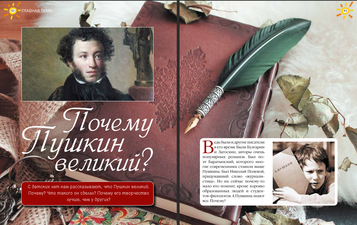 Хочу вам предложить статью из журнала "Лучик". Это замечательный просветительский журнал для современных детей. И их родителей) На днях слышала влиятельного музейного работника, утверждавшего, что ничего собственно русского (ну, кроме языка) в Пушкине нет. И "Онегин" заимствован у Джейн Остин... Так что и тётям с дипломами не помешает читать хорошие литературоведческие статьи)