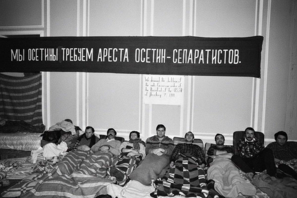 Участники акции требуют привлечения к ответственности лидеров южноосетинского движения за сепаратизм и выступают против Указа Президента СССР от 7 января 1991 года, ограничивающего юрисдикцию Тбилиси в зоне конфликта. 15 января 1991 года. (@pancaucasus)