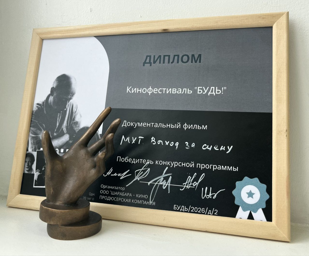 ! 🎉 🏆 Фильм "МХТ. Выход за сцену" стал победителем III Международного кинофестиваля "БУДЬ!" в номинации "Документальный фильм". Для нас это особенно ценно, потому что фестиваль в этом году был посвящён памяти Виктора Алексеевича Проскурина — актёра, на фильмах с участием которого выросли многие зрители. Спасибо Ирине Хонде и всей команде фестиваля за прекрасную организацию и тёплый приём! И, конечно, спасибо всем, кто был с нами на показе и поддерживал фильм! 💙 Фильм производства ЧАНО «Языки без границ» ✨ Снят на жестовом языке, озвучен и сопровождается субтитрами 📞 Генеральный спонсор — банк ВТБ