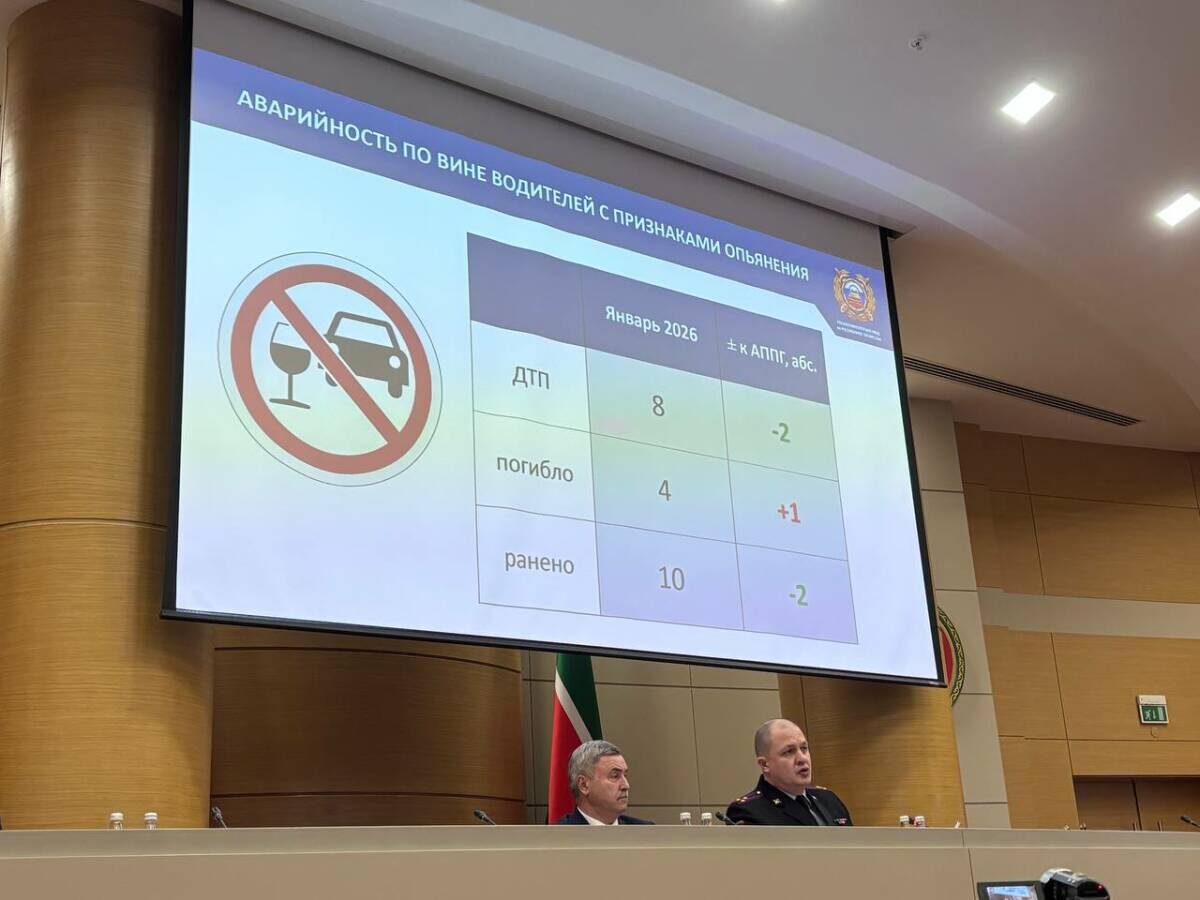 Автор: Роман Баданов За январь на дорогах Татарстана из-за пьяных водителей погибли четыре человека. Об этом на брифинге в Кабинете Министров РТ сообщил Начальник Управления ГИБДД МВД по республике Рустем Гарипов. «Всего за месяц зафиксировано восемь ДТП с участием водителей с признаками опьянения. Четыре человека погибли и десять получили ранения», – сказал Гарипов. Госавтоинспекция РТ напоминает: вождение в нетрезвом виде – грубейшее нарушение правил дорожного движения. О других темах, которые обсудили на брифинге в Кабинете Министров РТ, посвященном безопасности дорожного движения и ситуации на дорогах республики, – читайте в материале по ссылке.