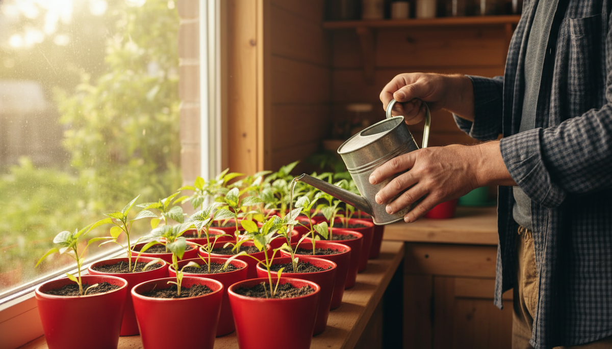 Мы много экспериментировали с тем, как сеять перец на рассаду, и остановились на двух рабочих схемах. Первая для ранних партий и занятого графика — торфяные таблетки или стаканчики объёмом 200 мл, глубина заделки 1-1,5 см, каждый сорт помечен отдельной зубочисткой с бумажным флажком. Таблетки предварительно проливаю тёплой водой около 30 градусов из кувшина, в который добавляю каплю стимулятора, если семена старые, или просто щепотку марганцовки, если сомневаюсь в чистоте. Вторая схема для более поздних посевов и экономии места — общий контейнер с хорошим рыхлым субстратом, смесь покупного грунта для паслёновых, щепотки вермикулита и прожаренного песка. В этом варианте слежу за глубиной особенно внимательно, перец не любит, когда его закапывают глубоко. После проклёвывания раскладываю ростки в отдельные стаканы, не затягивая, в фазе семядолей или первого настоящего листа, чтобы не травмировать корешок.
