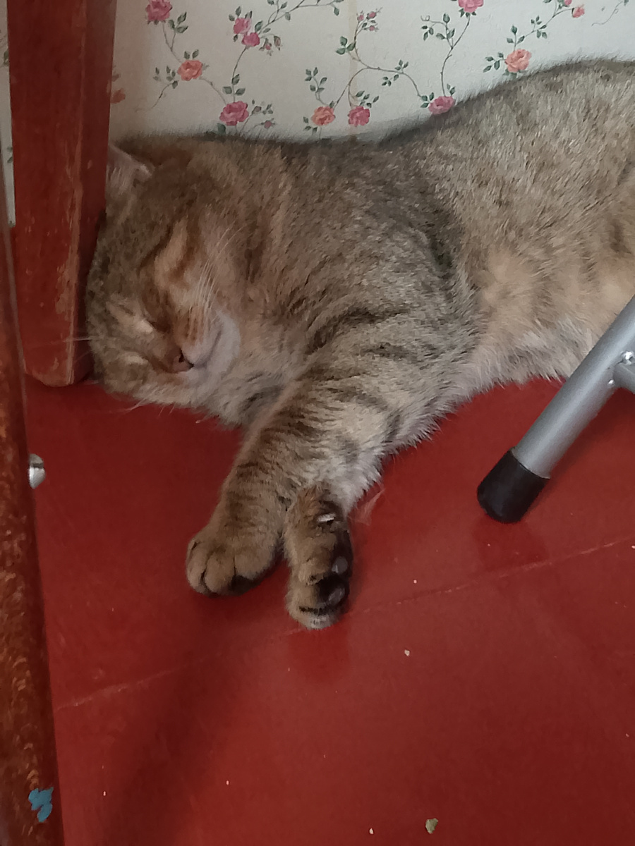 Кузя лежит сытый,дремлет и думает:конечно сухой корм -это быстрый перекус ,но вот когда съешь хорошую порцию макарон с пережаренным фаршем ,это совсем другое дело.Желудок полный и не урчит и глаза сами собой закрываются и мысли приятные в голове появляются.