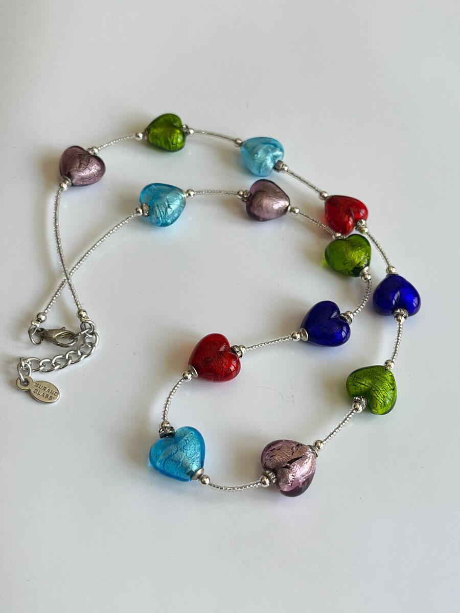 По вашим просьбам подобрала ожерелье с разноцветными сердцами https://murano-club.ru/muranskoe-steklo-ukrasheniya/tproduct/847686703-282163102222-ozherele-s-raznotsvetnimi-serdtsami-iz-m