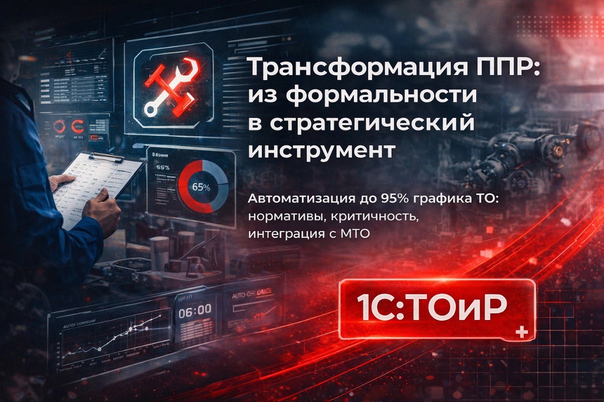 Это управляемость производства. На многих предприятиях планово-предупредительный ремонт существует формально: график есть — выполнения нет. В итоге 60–70% работ становятся аварийными, а простои растут. Мы регулярно видим это на старте проектов. 👉 Решение — не «ужесточить дисциплину», а перевести ППР в управляемый цифровой процесс. В новой статье разобрали, как это сделать в 1С:ТОиР на практике: 🔹 как выстроить нормативную базу (календарную, наработочную, событийную); 🔹 зачем классифицировать оборудование по критичности; 🔹 как настроить автоматическую генерацию заданий; 🔹 почему окно планирования в 14 дней — оптимально; 🔹 как интеграция с МТО снижает простои на 40–60%. 📊 Результаты внедрений: • выполнение плана ТО — до 93%; • снижение аварийных простоев — до 37% за 6 месяцев; • планирование ТО — 40 минут в неделю вместо 16 часов. 📖 Читать статью: 👉ЧИТАТЬ Если ППР на вашем предприятии постоянно «срывается» — проблема не в людях, а в системе.