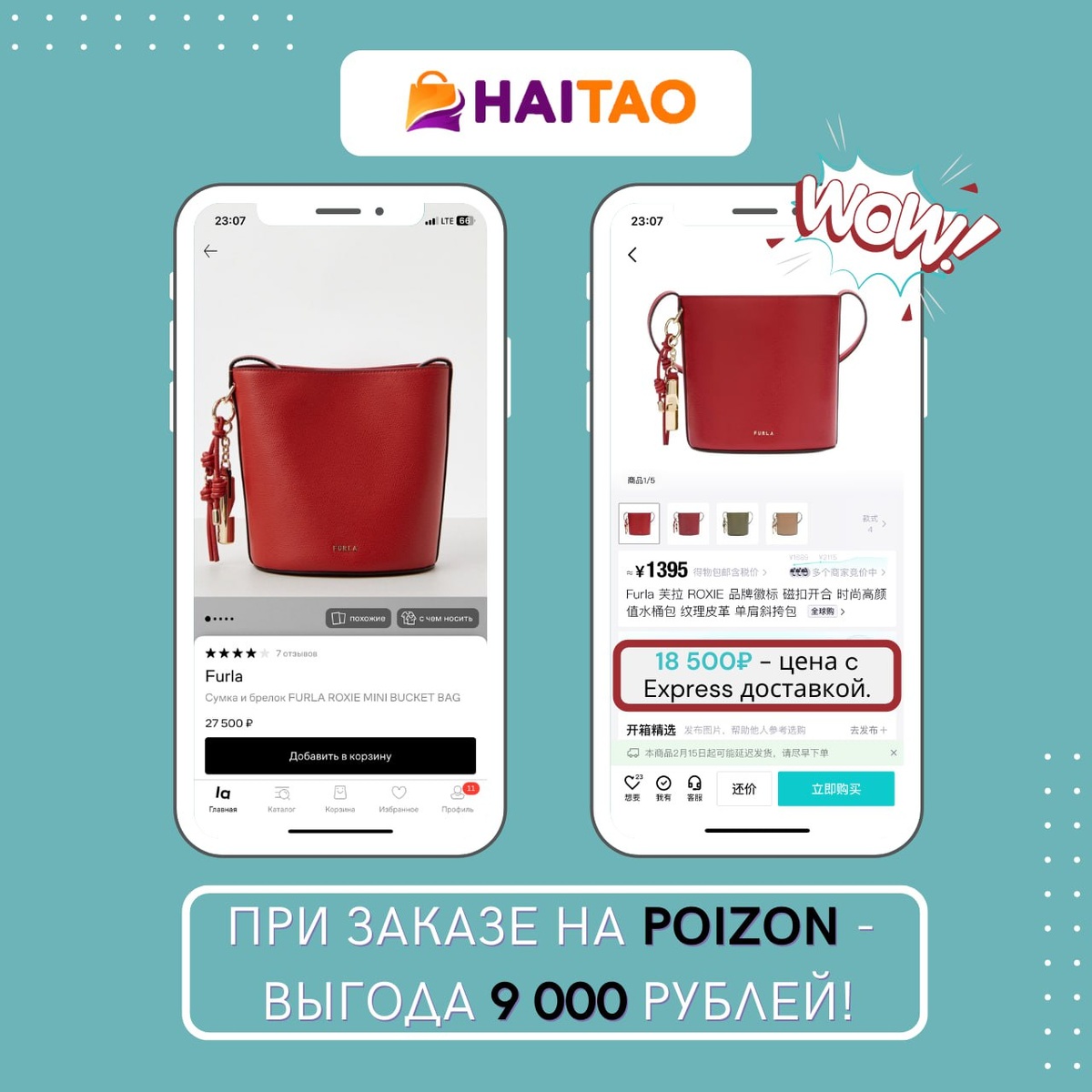 Смотрите сами 👀 👜 Furla Roxie mini bucket — в РФ: 27 500 ₽ — через Poizon с HaiTao: 18 500 ₽ с Express-доставкой 💥 Экономия — 9 000 ₽ WOW — и это не акция, а реальная цена Poizon 😮💨 💬 Хотите так же выгодно? Присылайте ссылку или фото — рассчитаем цену под вас 💜 #закажисhaitao #poizon #furla #выгодноепредложение #шокцена