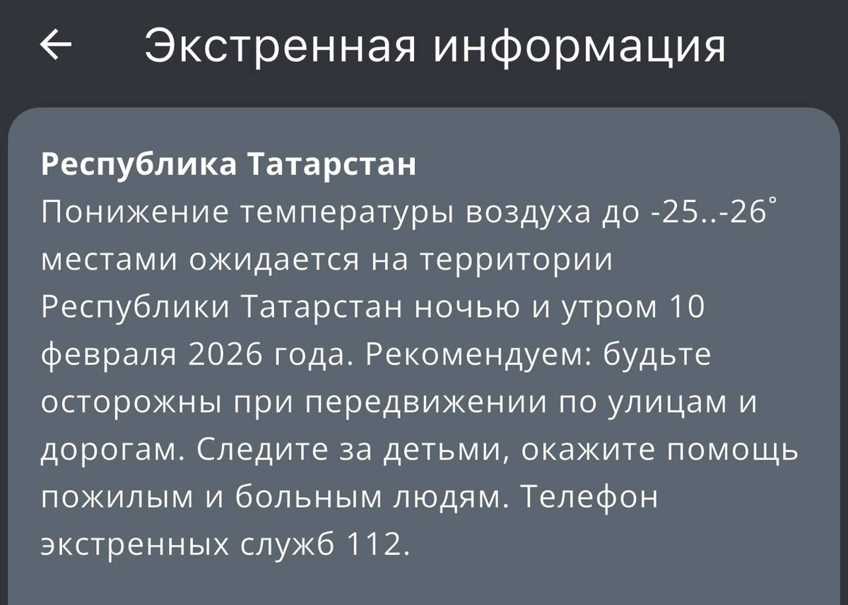 МЧС предупреждает татарстанцев о похолодании завтра, 10 февраля.