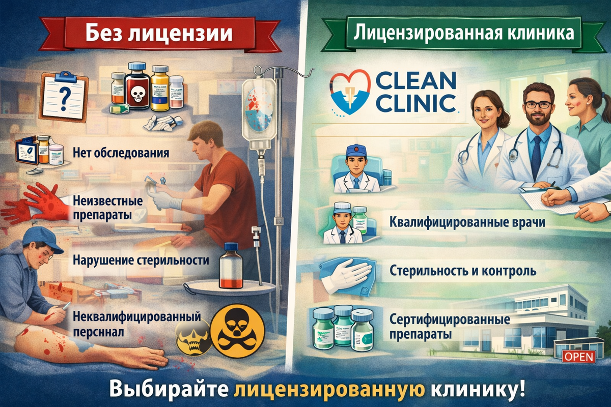 Инфузионная терапия сегодня стала модным трендом: «витаминные капельницы», «детокс», «энергия за 40 минут». Их предлагают в салонах красоты, на дому и даже в формате «выездного сервиса». Но за красивыми обещаниями часто скрываются реальные медицинские риски. Капельница — это медицинская процедура, а не бьюти-услуга. И при неправильном подходе она может быть опасна. Разберём 5 ситуаций, когда инфузионная терапия действительно может навредить. Перед любой инфузией врач обязан: Без этого невозможно понять: Например, избыток витаминов группы B или магния при определённых состояниях может вызвать ухудшение самочувствия. Если клиника не лицензирована, вы не знаете: Нарушение температурного режима или использование несертифицированных растворов может привести к: Инфузия — это прямой доступ к кровотоку. Если не соблюдаются строгие стандарты стерильности, возможны: В домашних условиях или в «кабинетах без лицензии» риск значительно выше. Капельницу должен ставить медицинский работник с профильн