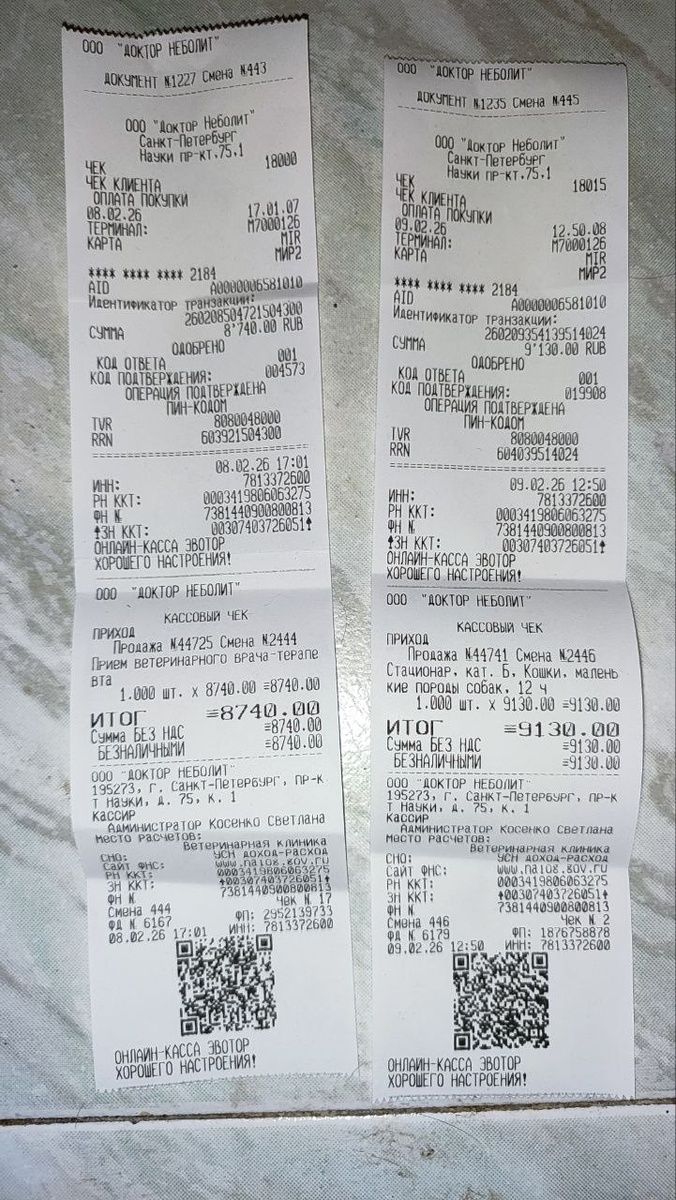 Благодарю всех кто помогает. Кот лёг в больницу. Пока что вот такие траты.