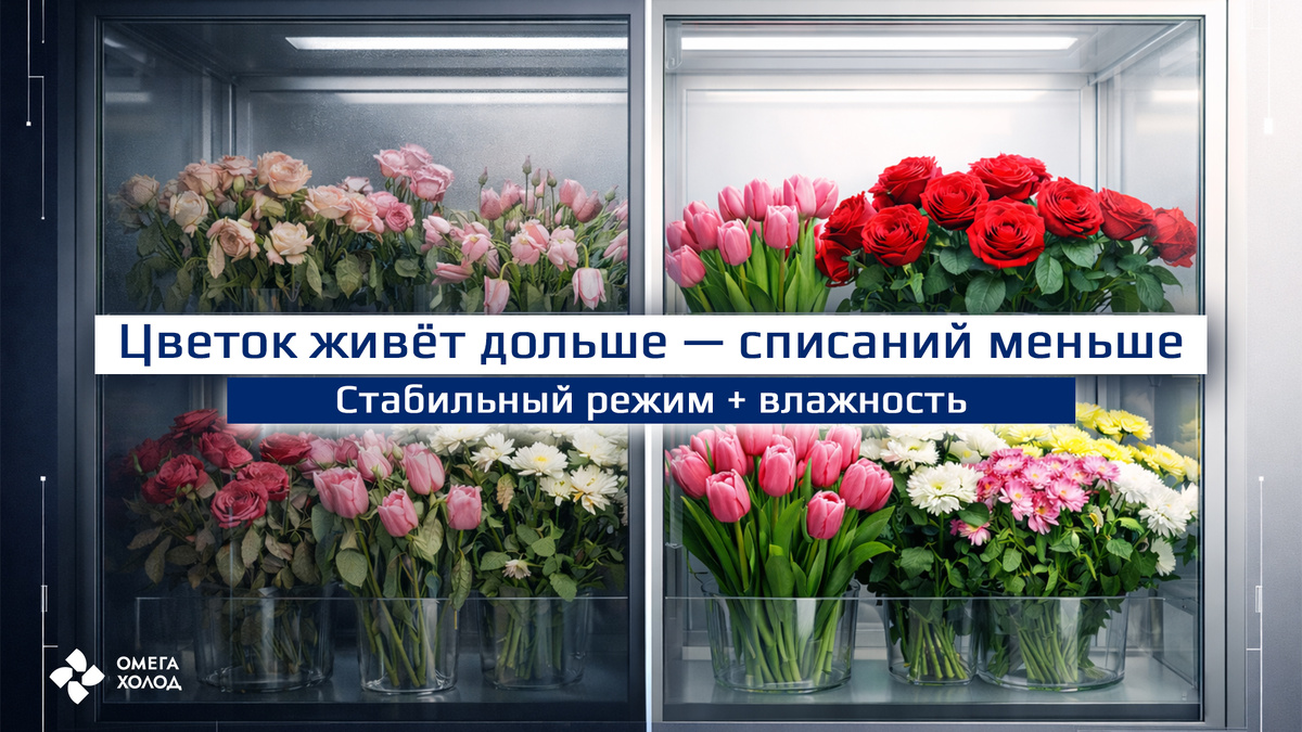 В цветочной камере проблема часто не в том, что “мало холода”, а в том, что воздух пересушивается. Лепестки теряют влагу — букет быстрее сыпется, растёт отбраковка и ваши счета. — держит стабильный режим хранения (обычно +4…+8°C) — не сушит воздух → цветок дольше остаётся “живым” → меньше отбраковки — потребляет до 4х раз меньше энергии → счета на электроэнергию ниже 💬 Напишите в комментариях «Цветы» — подскажем, какой режим чаще делают под ваш формат: магазин / салон / склад. Чтобы посчитать точно: размер камеры + город + какие цветы. ✅ Подписывайтесь — будем разбирать реальные ошибки, из-за которых летит вверх отбраковка и счета