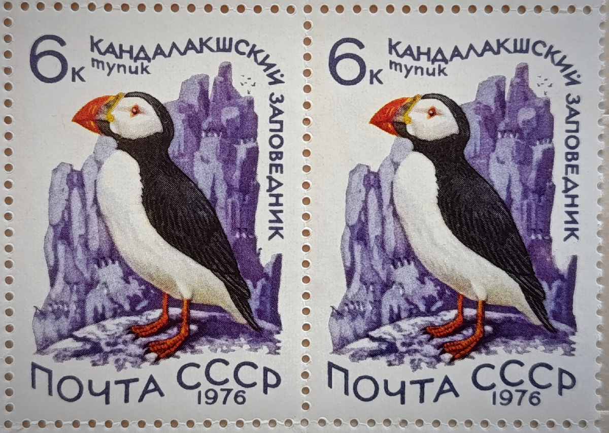 Хороший пример незначительного механического сбоя, произошедшего на каком-то из этапов печати, и всё то время, пока он был, на каждой 32 марке листа, состоящего из 36 марок (6 по горизонтали, 6 по вертикали), тупик отрывался от скалы и улетал к своей высокой цели. Очень нехарактерное поведение для многочисленной популяции этих птиц (4700000 особей в тираже), что говорит о кратковременном сбое. Остаётся надеяться, что это были не последние листы, которые вышли из-под печати, неисправность устранили, а наш путешественник, передумав становиться Икаром в мире птиц,