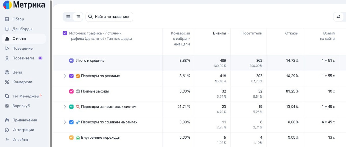 Сегодня хочу поговорить про конверсию сайта. Как оказалось, многие предприниматели не понимают, что это и для чего. Когда продажи завязаны на сайте, тем более если это основной или существенный канал продаж, то понимать откуда идут заявки просто необходимо. Да, есть реклама, есть соц.сети, есть и органика (seo)...но...что приносит больше конверсий? Вспоминаем, что такое конверсия. Простыми словами — это процент людей, которые сделали нужное вам действие (звонок, заявка и др.) от общего числа посетителей сайта. Формула простая: Конверсия (CR) = (количество заявок / количество визитов) × 100%. Например: 200 человек зашли на сайт, из них 10 оставили заявку, соответственно, CR = 5% Как понять и где посмотреть, на что приходится основная доля продаж? 1️⃣ Заходим в Яндекс Метрику - Источники, сводка 2️⃣ Выбираем нужные нам макроцели (заявка, звонок, отправка формы и т.д.) 3️⃣ И проводим анализ конверсии по Переходам с рекламы, из Поисковых систем и т.д. ❔ Зачем предпринимателю знать ко