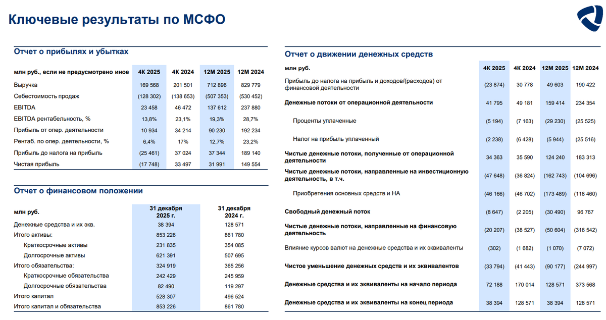 ▪️ EBITDA: IV кв. 23,5₽ млрд (-49,5% г/г), 2025 г. 137,6₽ млрд (-42,2% г/г)