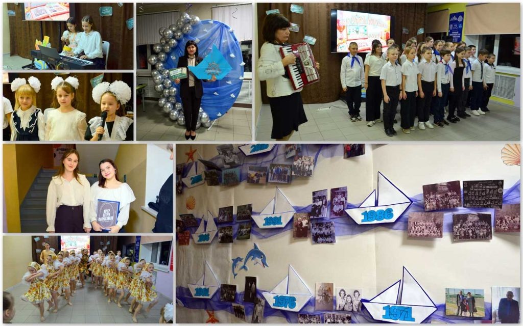 Весь сценарий был построен как путешествие по страницам старого фотоальбома. Ведущие – старшеклассницы Екатерина и Вероника – уверенно листали эти воображаемые страницы, переходя от одной «фотографии»-номера к другой. У регистрации гостей встречали не педагоги, а активисты российского «Движения первых». Ребята вручали гостям памят