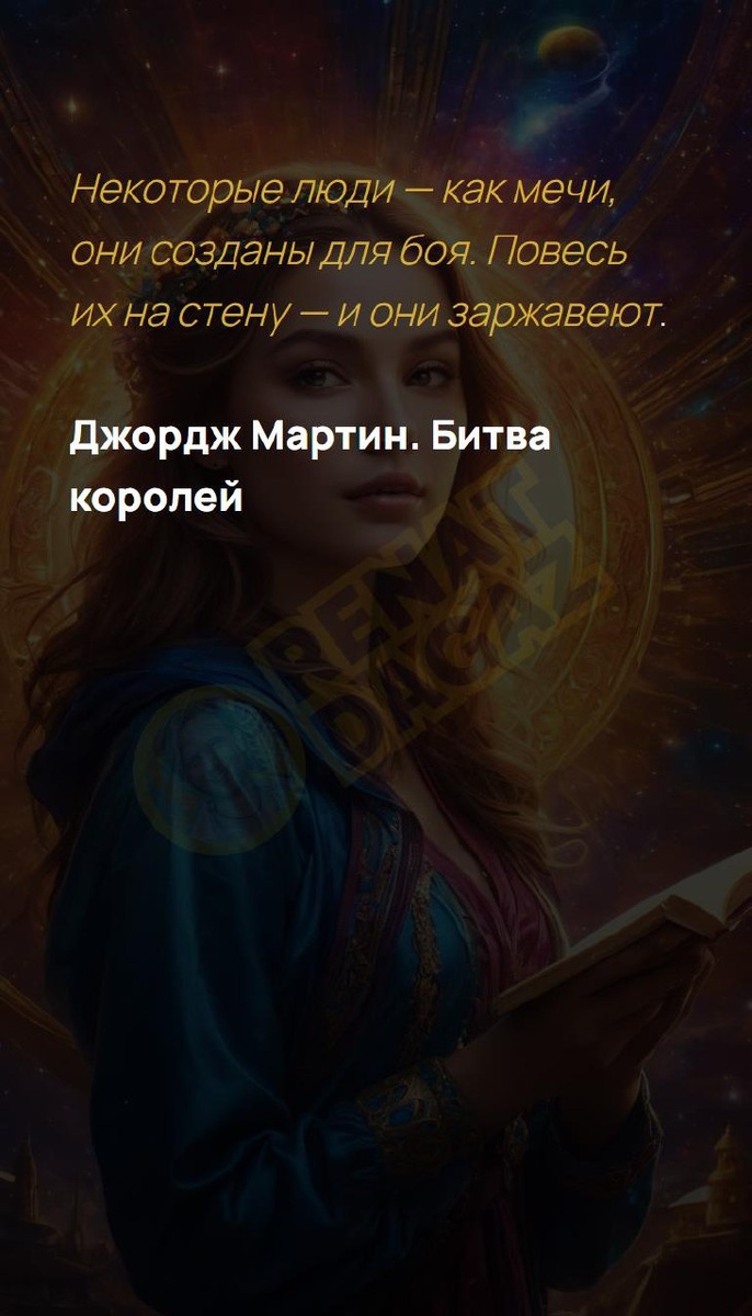 Повесь их на ст... Некоторые люди — как мечи, они созданы для боя. Повесь их на стену — и они заржавеют. Джордж Мартин. Битва королей Архитектура вашей души | Ваш Ангел и Демон T | VK | Pin | YouTub | Dzen #простыерадости #карьерныйрост #здоровьедуши #душевныйпокой #настроение #богатство #новоесознание #мысль #мудрость #9число #9февраля