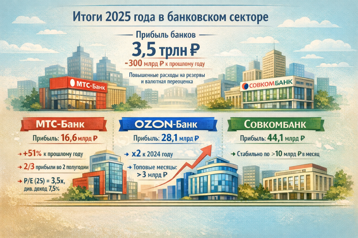 МТС, Озон, Совкомбанк. Результаты банков за 2025 год. Чьи акции дешевые?
