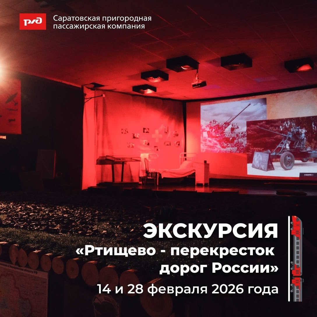! 🚆 Программой подразумевается дорога до Ртищево пригородным поездом № 6161, сообщением Саратов – Ртищево, отправлением со ст. Саратов-1 в 08:43, прибытием в Ртищево в 12:01 по местному времени. ⏩ На перроне группу уже будет ожидать экскурсовод. Предусмотрен осмотр железнодорожного вокзала, паровоза-памятника Л-0026, водонапорной башни, Соборного храма во имя Святого благоверного великого князя Александра Невского, Площади Памяти и Славы. ⏩ В Ртищевском краеведческом музее экскурсанты узнают о жизни и деятельности физика, электротехника П.Н. Яблочкова, а также окунутся в военную тематику и посетят программу "Дорога жизни". Программа "Дорога жизни" посвящена Дню полного освобождения Ленинграда от немецко-фашистской блокады. Вы увидите: - кадры кинохроники тех лет - воспоминания ртищевца - участника событий 1941-1944 годов Смирнова В.Г. - интерактивную программу Посетители услышат рассказы о судьбах эвакуированных детей, чья послевоенная жизнь была связана с Ртищевским районом. Такж