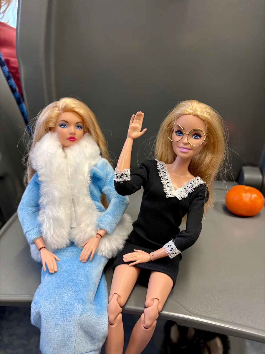 В электричке уже освободила девочек из полиэтиленового плена, Энди переодела, Милли оставила, как есть. Получилась вот такая парочка.