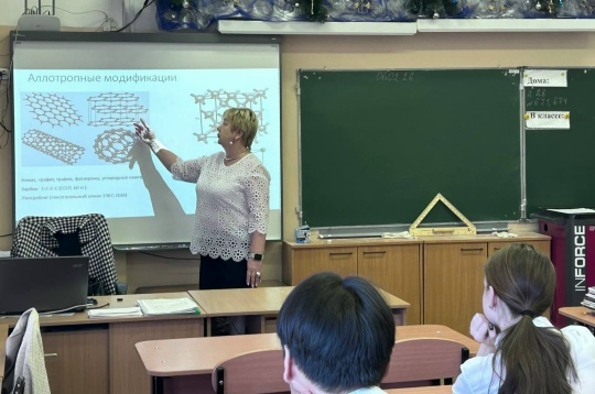 В рамках реализации Плана 6 февраля 2026 года в СОШ № 15 для учеников 10-го класса Фондом организована лекция кандидата химических наук, доцента химического факультета ИГУ Людмилы Михайловны Димовой.
